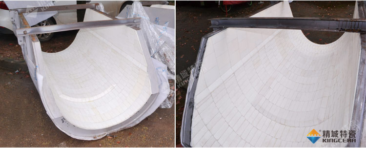 1. 粘貼式:粘貼式是用粘膠將耐磨陶瓷張貼在設備內表面。這種方法裝置簡潔,本錢較低,格外合適現場大面積施工,節省維修時刻。可是因為粘膠主要是有機成分,不耐高溫(較高耐溫達150℃),且易老化。因而這種張貼方法只適用于常溫下的工作環境。