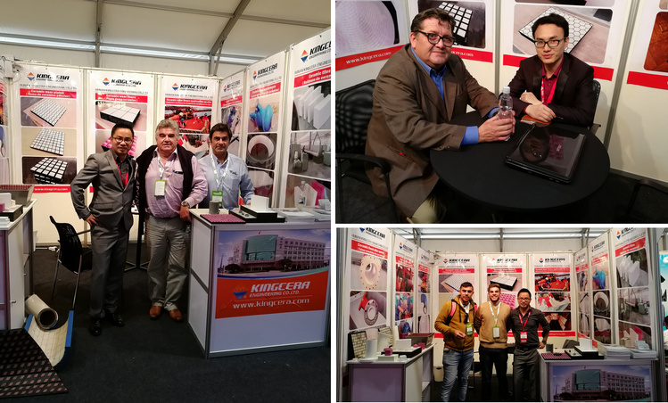 在為期5天的2017年智利Exponor礦業(yè)展覽會(huì)中,湖南精城特種陶瓷有限公司也攜公司主要拳頭產(chǎn)品:氧化鋁耐磨陶瓷復(fù)合襯板,