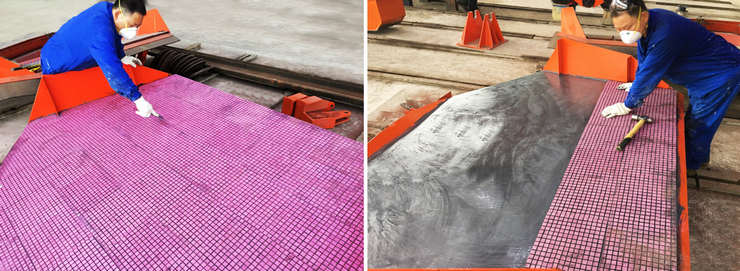 陶瓷橡膠復合襯板,我們需要將表面所有油漆全部打磨掉,前期處理任務重、時間長。