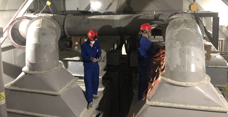 此次我司的安裝任務(wù)是某制砂廠φ1100、φ650除塵管道的彎、直管易磨損處安裝耐磨陶瓷和檢修平臺(tái)的搭建。由于海口市天氣炎熱,日平均氣溫均達(dá)40℃以上,停機(jī)時(shí)間短且在距離地面20多米以上的高空進(jìn)行焊接作業(yè),給現(xiàn)場(chǎng)施工帶來(lái)了不小的挑戰(zhàn)。于是我司便先安排制作二班班長(zhǎng)趕赴施工現(xiàn)場(chǎng),勘察作業(yè)環(huán)境及是否能夠完成此次檢修平臺(tái)的搭建工作。當(dāng)制作二班班長(zhǎng)到達(dá)某制砂廠時(shí),已是當(dāng)日下午5點(diǎn)多了,客戶單位得知我司派人過(guò)來(lái)了,便安排廚房多炒幾個(gè)美味的菜品送至員工宿舍給我司(外)機(jī)械、安裝隊(duì)員吃。而當(dāng)客戶單位老板得知我司只安排一個(gè)人過(guò)來(lái)后,臉色轉(zhuǎn)變,立即拿起手中的手機(jī)與我司業(yè)務(wù)經(jīng)理進(jìn)行聯(lián)系,質(zhì)問(wèn)我司這是什么意思?這就是我司所展現(xiàn)出來(lái)的實(shí)力?我司這樣的服務(wù)能力還怎樣合作下去?......當(dāng)天晚上,我司制作二班班長(zhǎng)把某制砂廠的實(shí)際情況匯報(bào)給了楊總。第二天,楊總便立即組織(外)機(jī)械、安裝人員召開會(huì)議,會(huì)議強(qiáng)調(diào):既要保證人員的生命安全,又要在規(guī)定時(shí)間內(nèi)“保質(zhì)、保量”的完成任務(wù)。當(dāng)天,我司(外)機(jī)械、安裝隊(duì)員安全到達(dá)海口市美蘭機(jī)場(chǎng)后,未做停留,立即趕往某制砂廠。到達(dá)某制砂廠后,我司(外)機(jī)械、安裝隊(duì)員一同前往施工現(xiàn)場(chǎng),勘察作業(yè)環(huán)境,核實(shí)工作任務(wù),預(yù)估完成時(shí)間。
