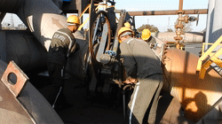 映入眼簾的是勞保穿戴整齊的員工正在進行焊接作業,雖然衣服早已被汗水浸濕,黑乎乎的臉蛋也分不清是誰,但是他干勁十足,動作規范嫻熟,用自己的專業知識為鑫匯檢修工作添一磚一瓦。